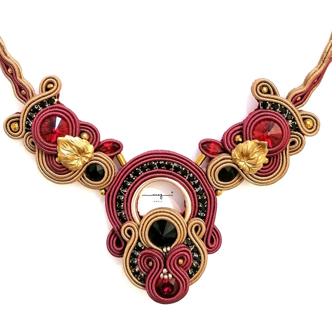 Necklace from 'Oriente' Collection by MEG Jewels ®. Entirely hand-sewn, made of Italian yarns, premium crystals, Alcantara. Certificate of guarantee and authenticity.