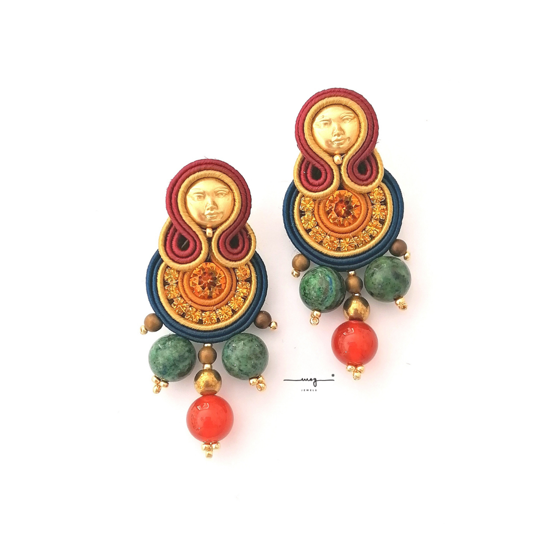 Interamente cuciti a mano, realizzati con intrecci di filati italiani, inserti i vintage in ottone, pietre semi-preziose, perni nickel free, finiture in Alcantara. Certificato di garanzia e autenticità.