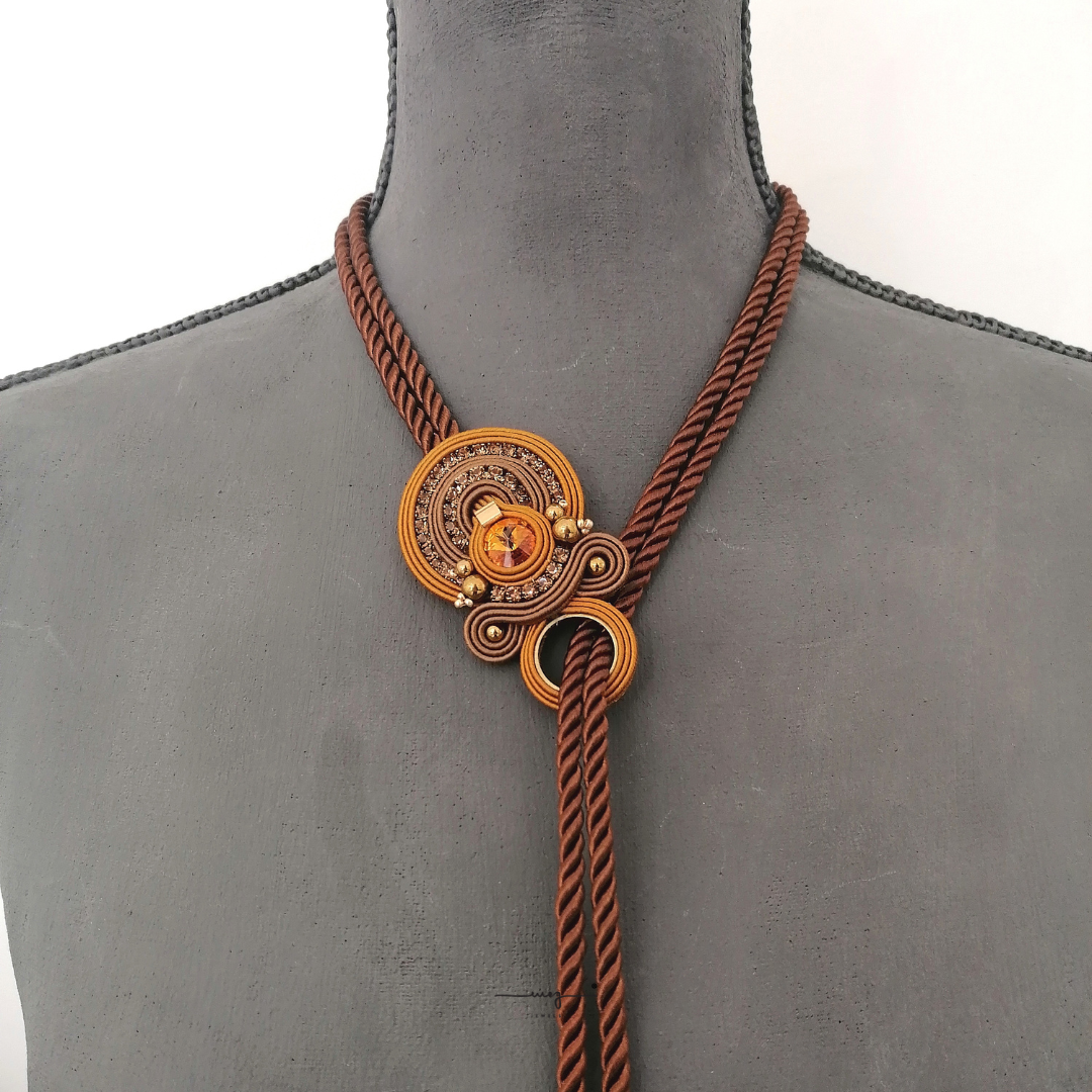 Lunghezza totale cm 110 circa. Colori: marrone, terracotta, cammello, dettagli gold.