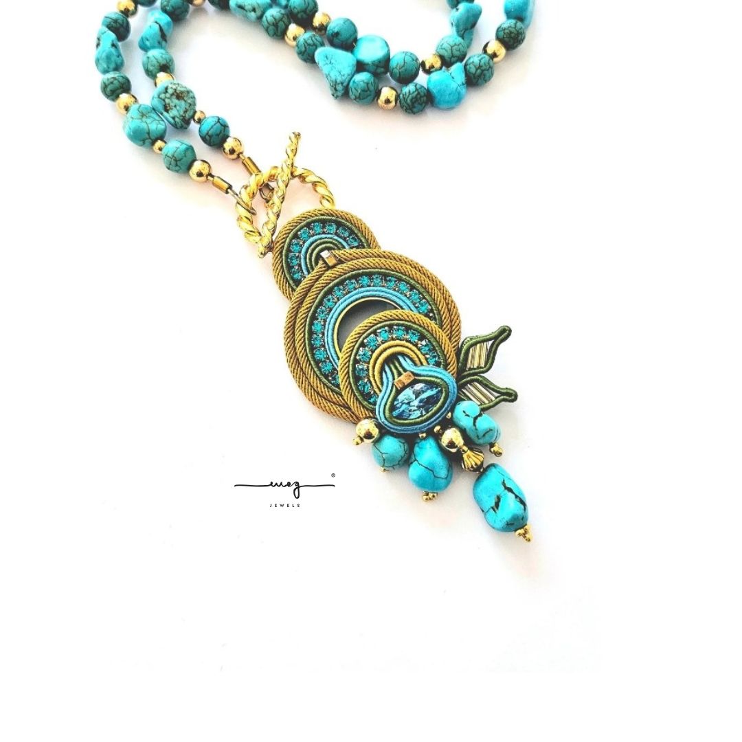Collana ciondolo, Collezione "Atlantide" by MEG Jewels®. Colori: turchese, verde salvia, acquamarina, ocra, oro.