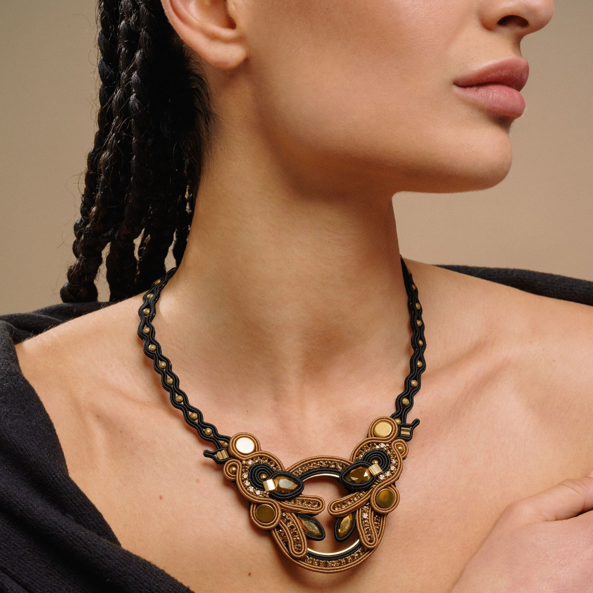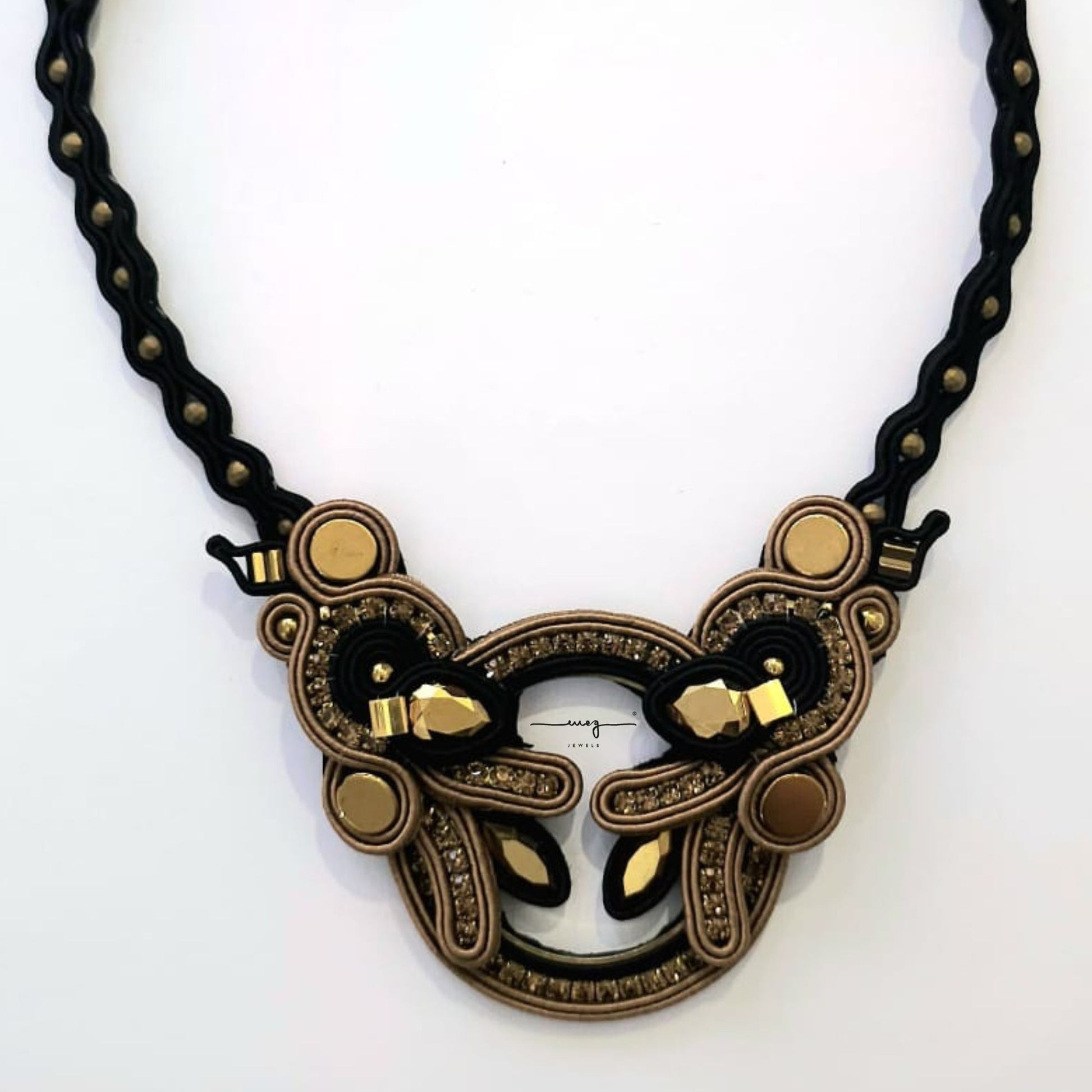 Necklace from SHERAZADE Collection by MEG Jewels®. Entirely hand-sewn, made of italian yarns, premium crystals, Alcantara.