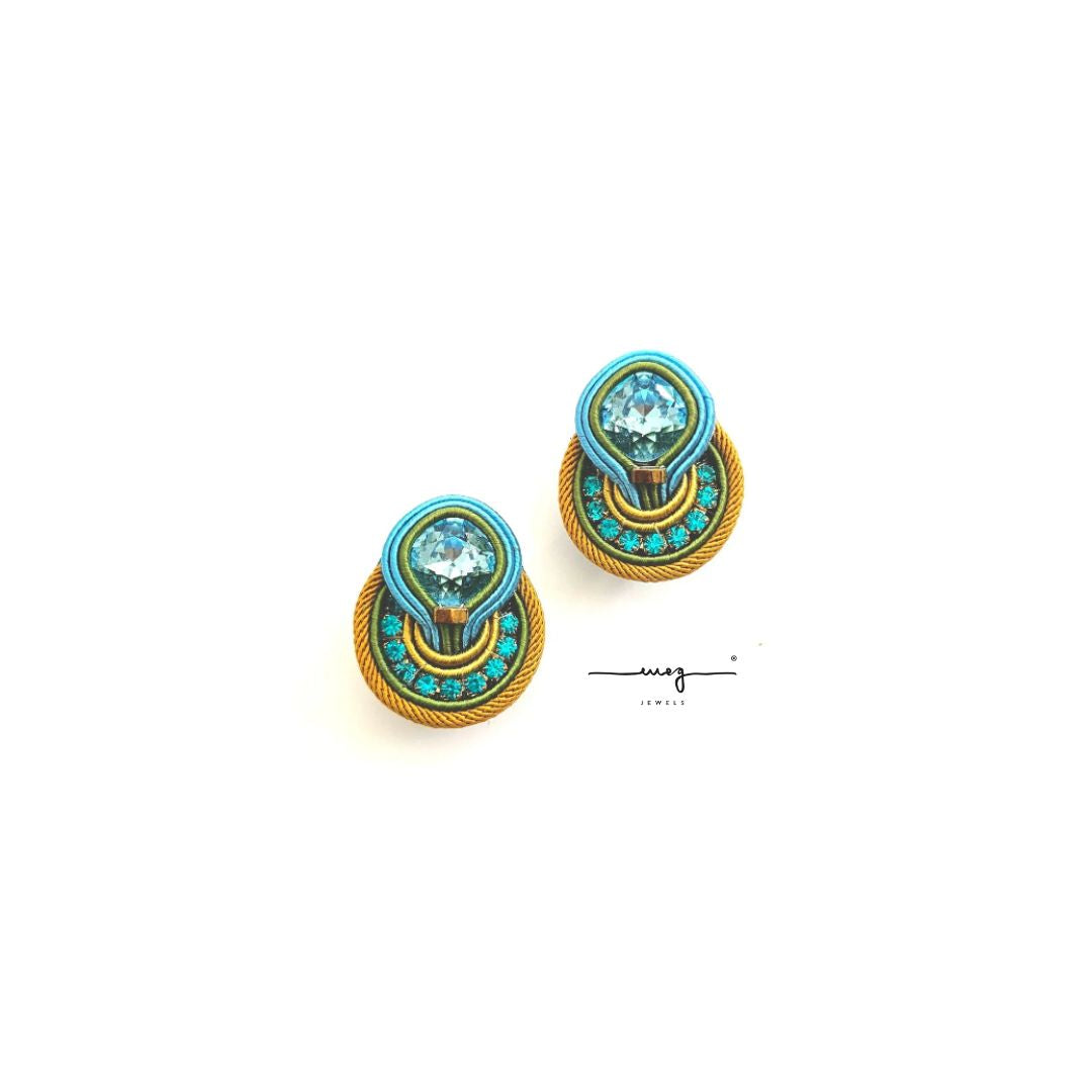 Earrings small size "Atlantide" Collection by MEG Jewels ®. Entirely hand-sewn, made of Italian yarns, premium crystals ' square ', nickel free pins, Alcantara. Certificate of guarantee and exclusivity.