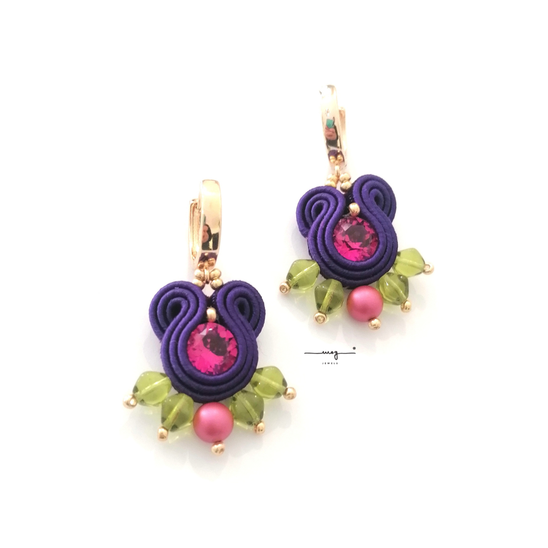 Small size earrings from "Fusion" Collection by MEG Jewels ®. Entirely hand-sewn, made of nickel free hoops 2.5 cm, Italian yarns, premium crystals, Alcantara.