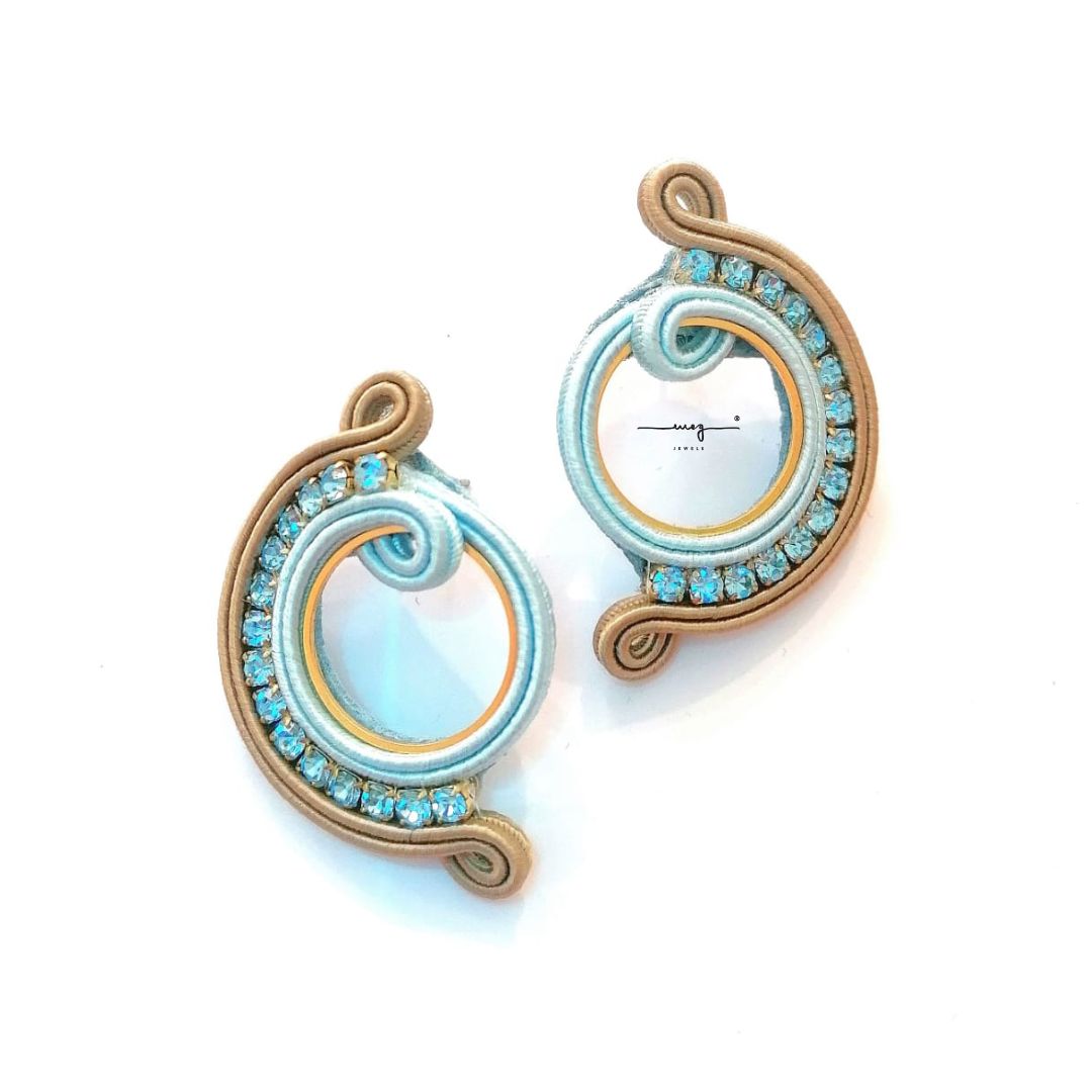 Medium size earrings from The Great Wave Collection. Entirely hand-sewn, made of Italian yarns, premium crystals, nickel free pins, Alcantara. Certificate of guarantee and authenticity.
