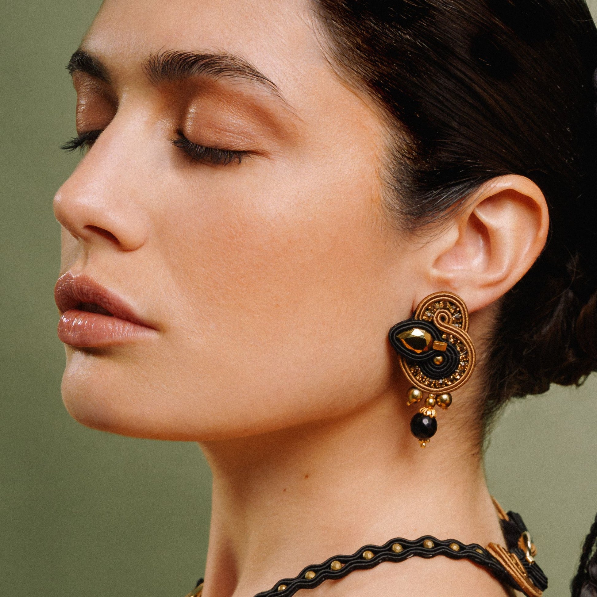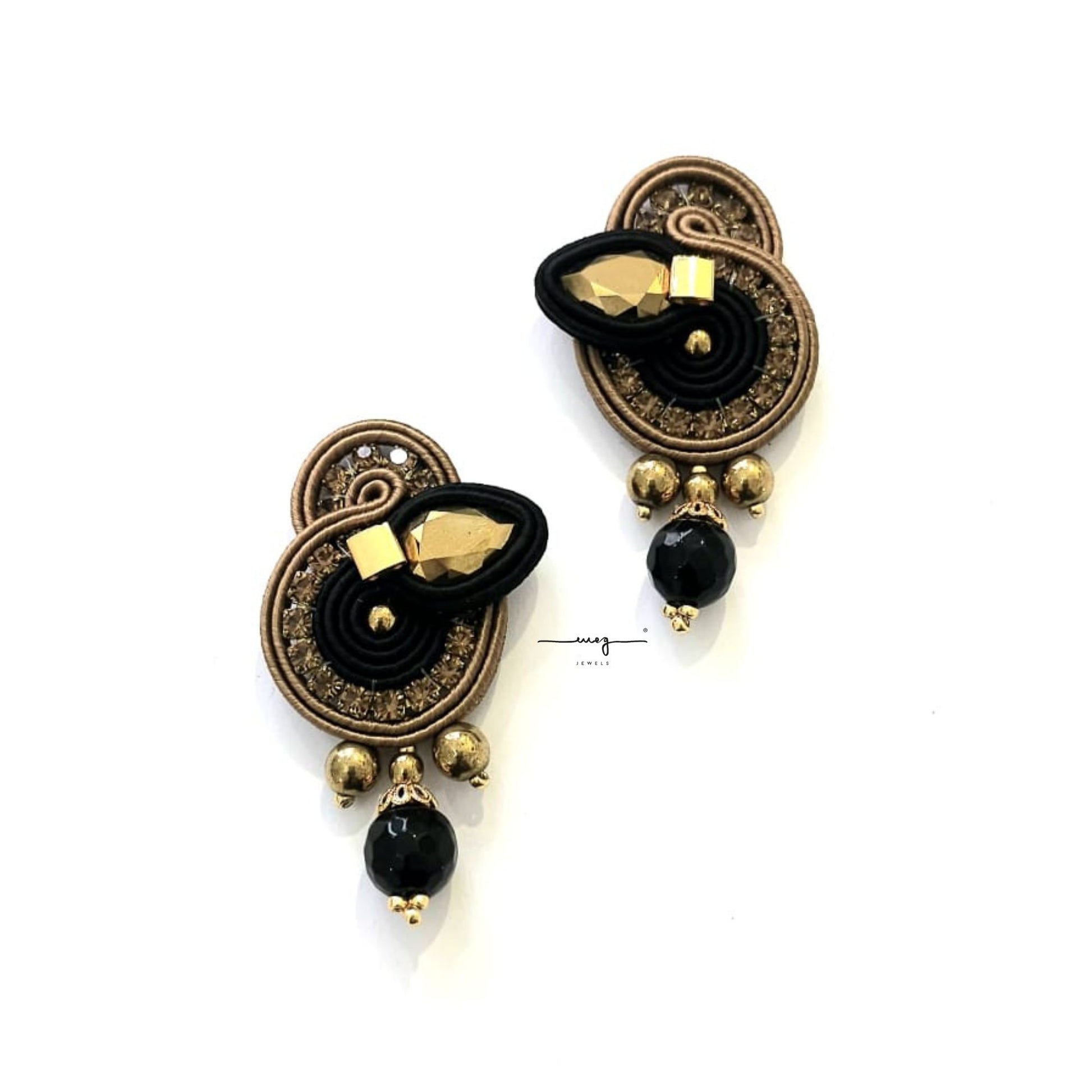 Medium size earrings from SHERAZADE Collection by MEG Jewels®. Entirely hand-sewn, made of italian yarns, premium crystals, nickel free pins, Alcantara.