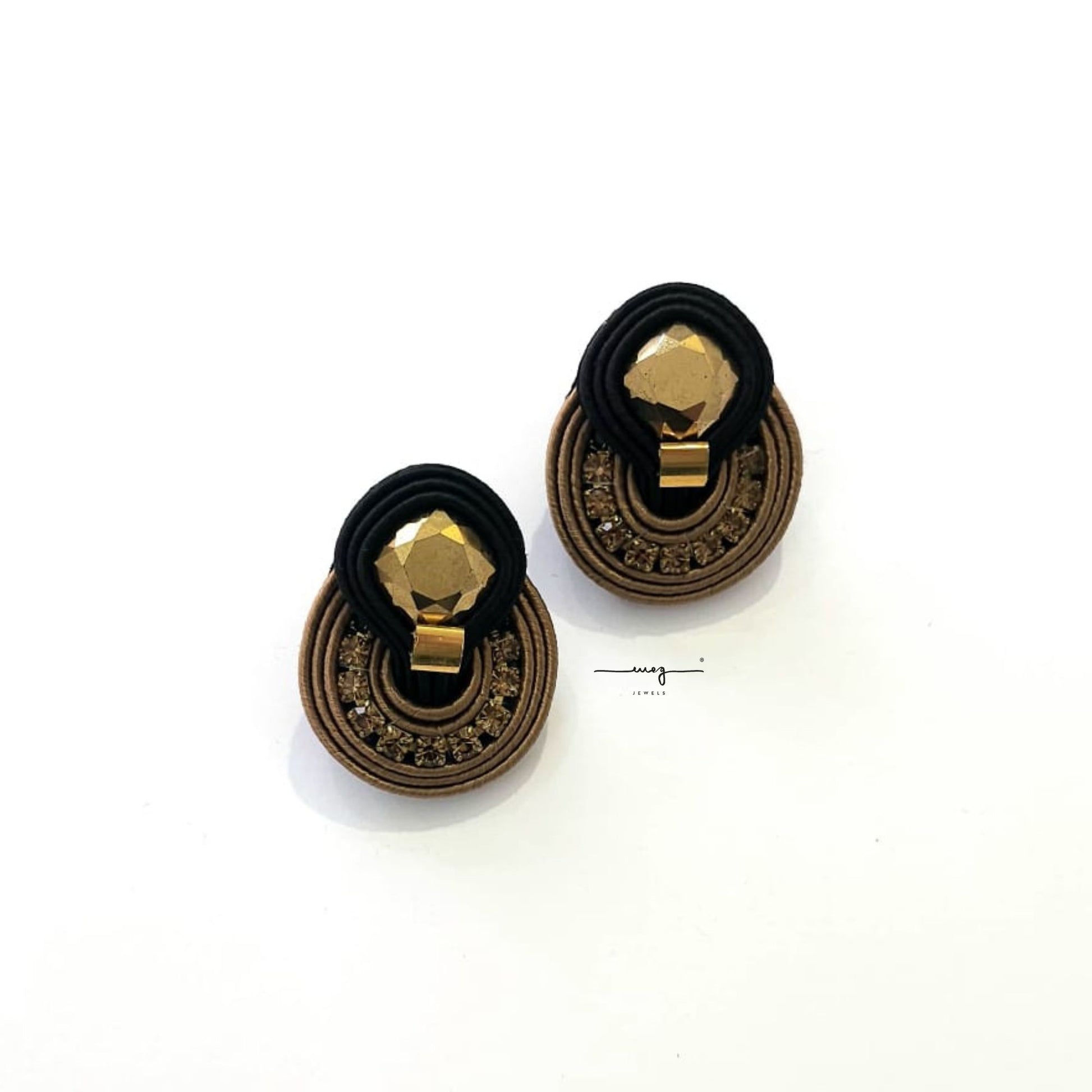 Small size earrings from SHERAZADE Collection by MEG Jewels®. Entirely hand-sewn, made of italian yarns, premium crystals, nickel free pins, Alcantara.