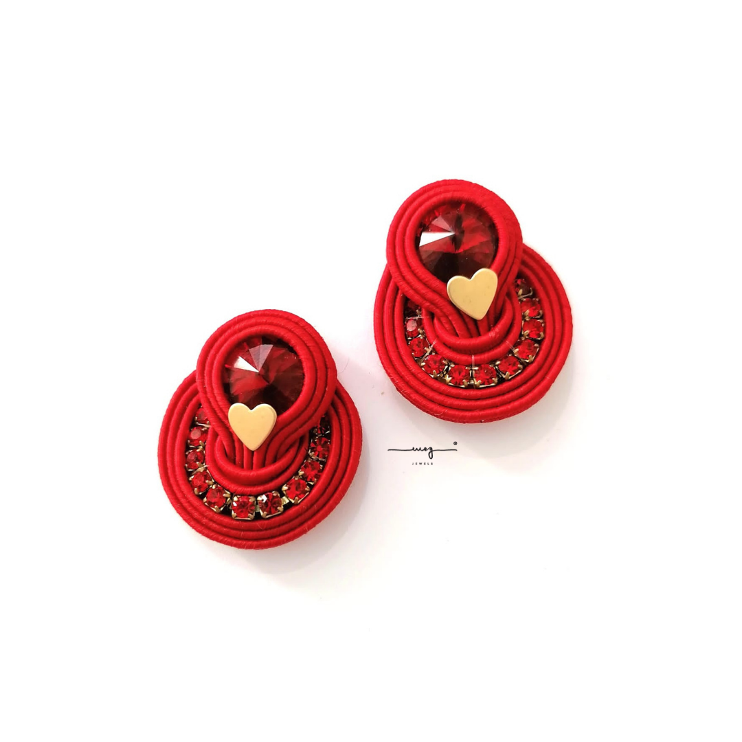 Small size earrings - "Sweet Heart" Collection by MEG Jewels ®. Entirely hand-sewn, made of italian yarns, premium crystals, pins of 925 silver Made in Italy, Alcantara.